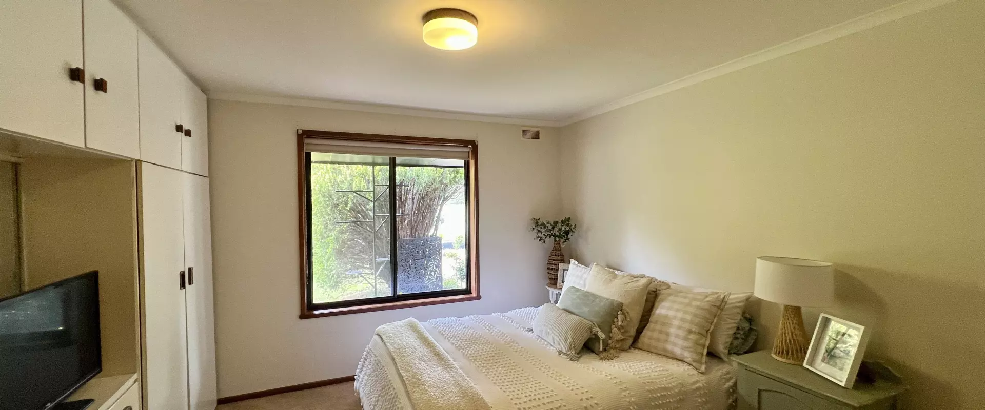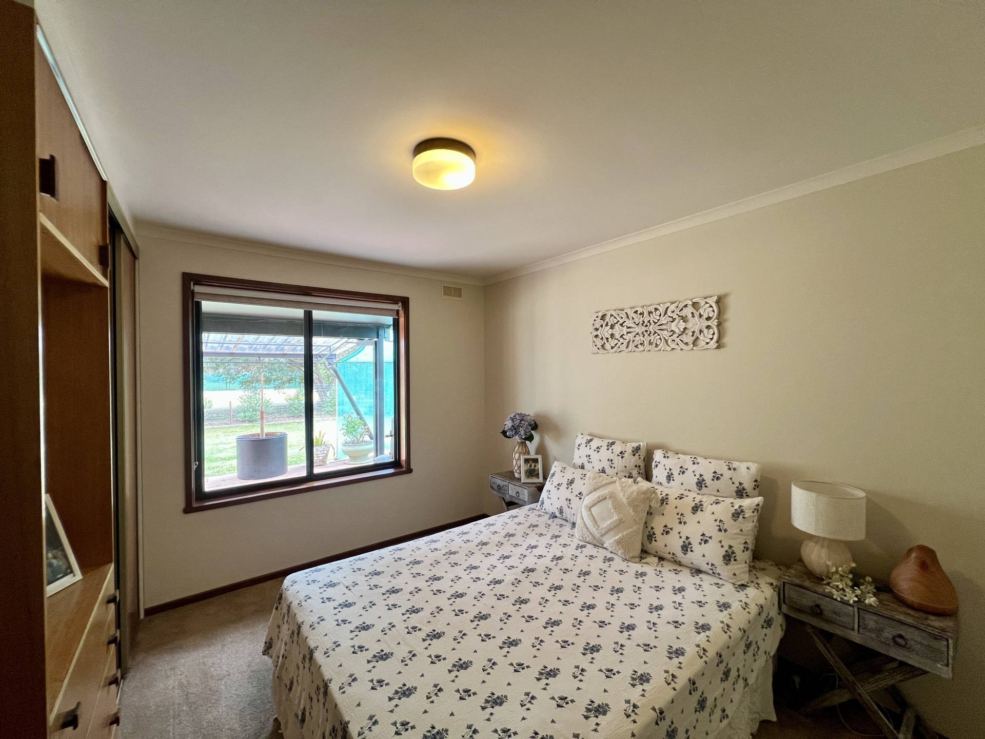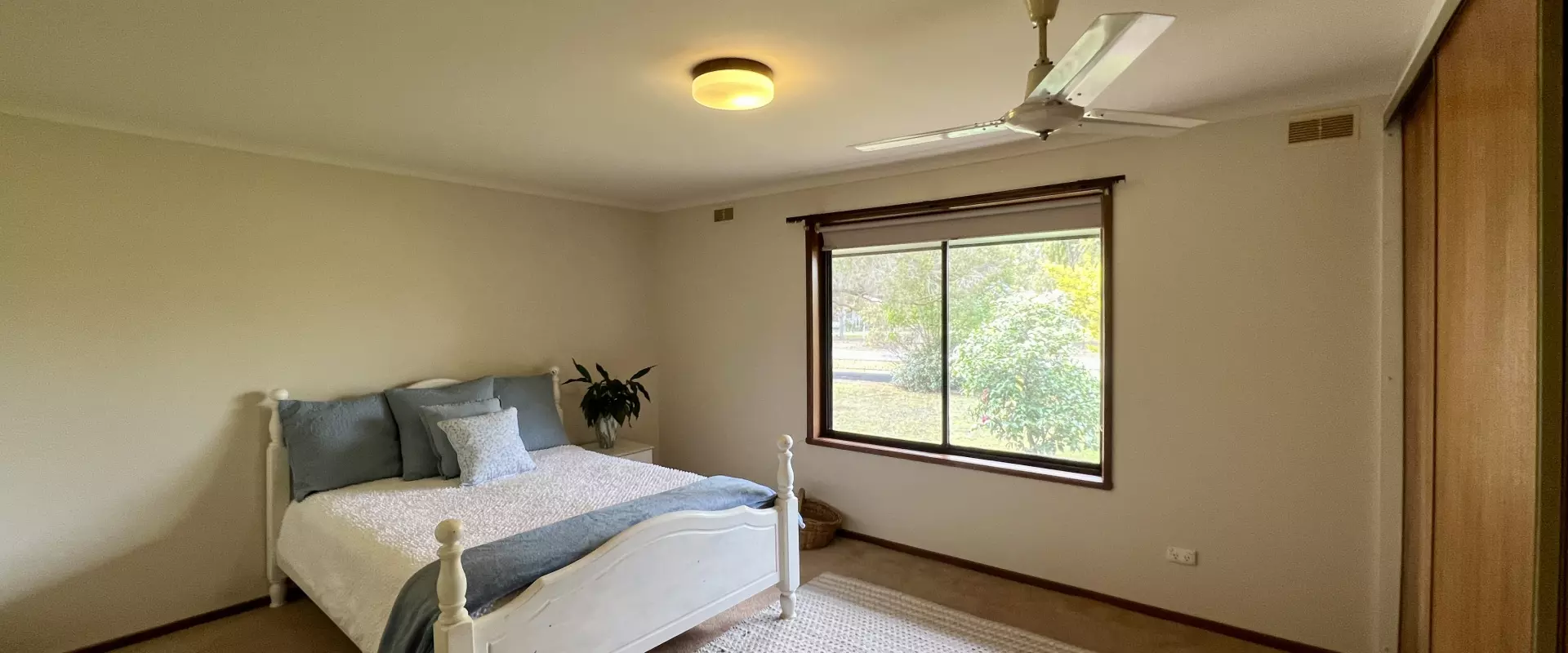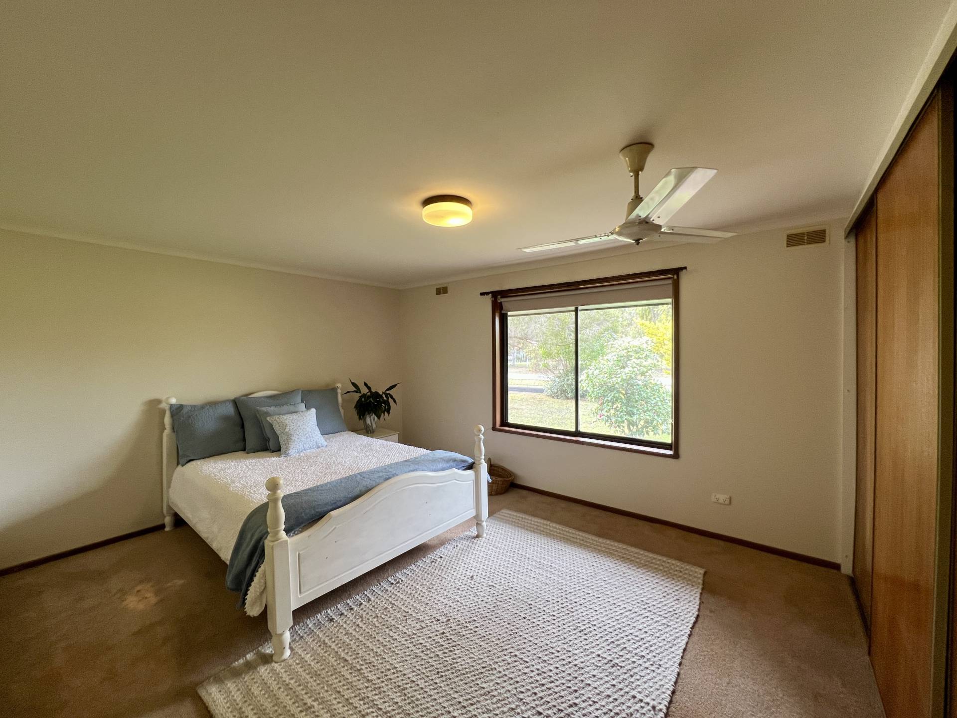 Inside, the home is warm and welcoming, featuring a cosy lounge with solid fuel heater, a light-filled family room with split system, and a well-equipped kitchen with updated appliances and plenty of storage. Four generous bedrooms with built-in robes provide room for the whole family, while fresh carpet, evaporative cooling, floor heating, and solar power add everyday comfort and efficiency.