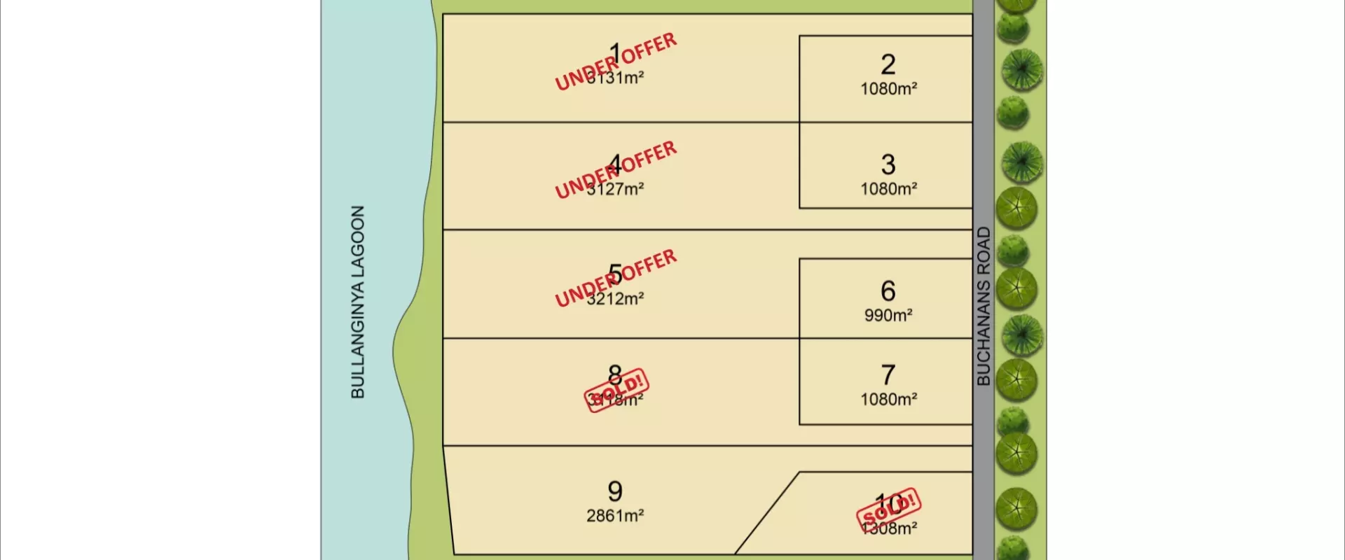 For those looking for a more manageable allotment without compromising on location, there are also five smaller blocks fronting Buchanan’s Road, ranging in size from 990m² to 1308m². Ideal for families, retirees or investors, these blocks combine convenience with the relaxed charm of Barooga living.