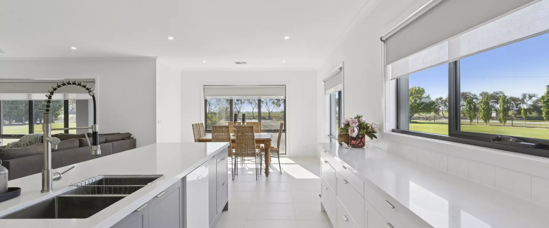 Boasting a 6-star energy rating, this four-bedroom, two-bathroom home features a stunning modern kitchen with stone benchtops, a large island bench with breakfast bar, quality 900mm oven, dishwasher, double stainless-steel sink, and a generous walk-in pantry. The open-plan kitchen, dining, and living area creates a warm and inviting heart to the home.