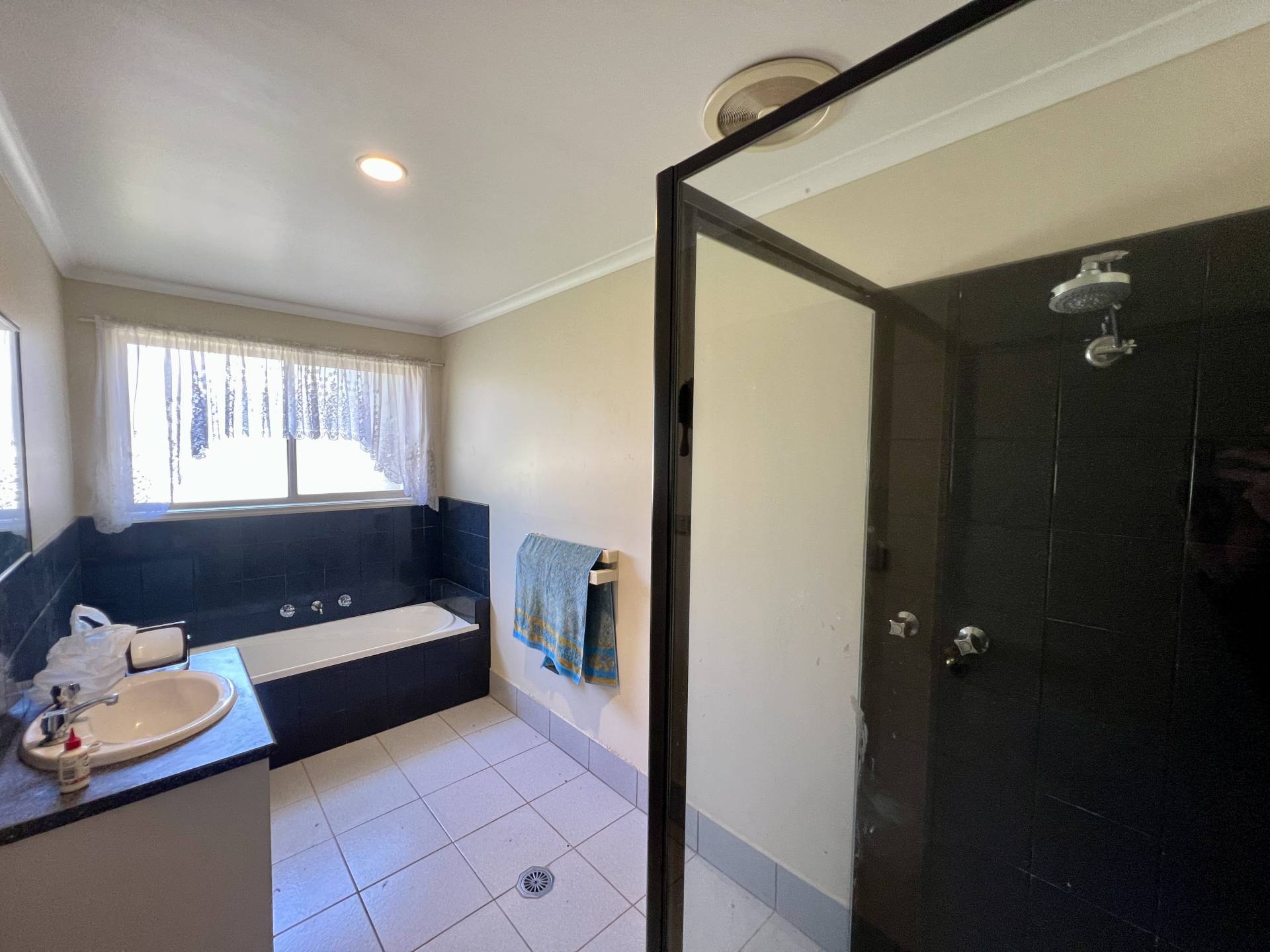 The master bedroom includes a walk-in robe and ensuite, while the remaining two bedrooms are fitted with built-in robes. The main bathroom offers a bath, shower, and separate toilet, and there’s also a spacious laundry for added convenience.