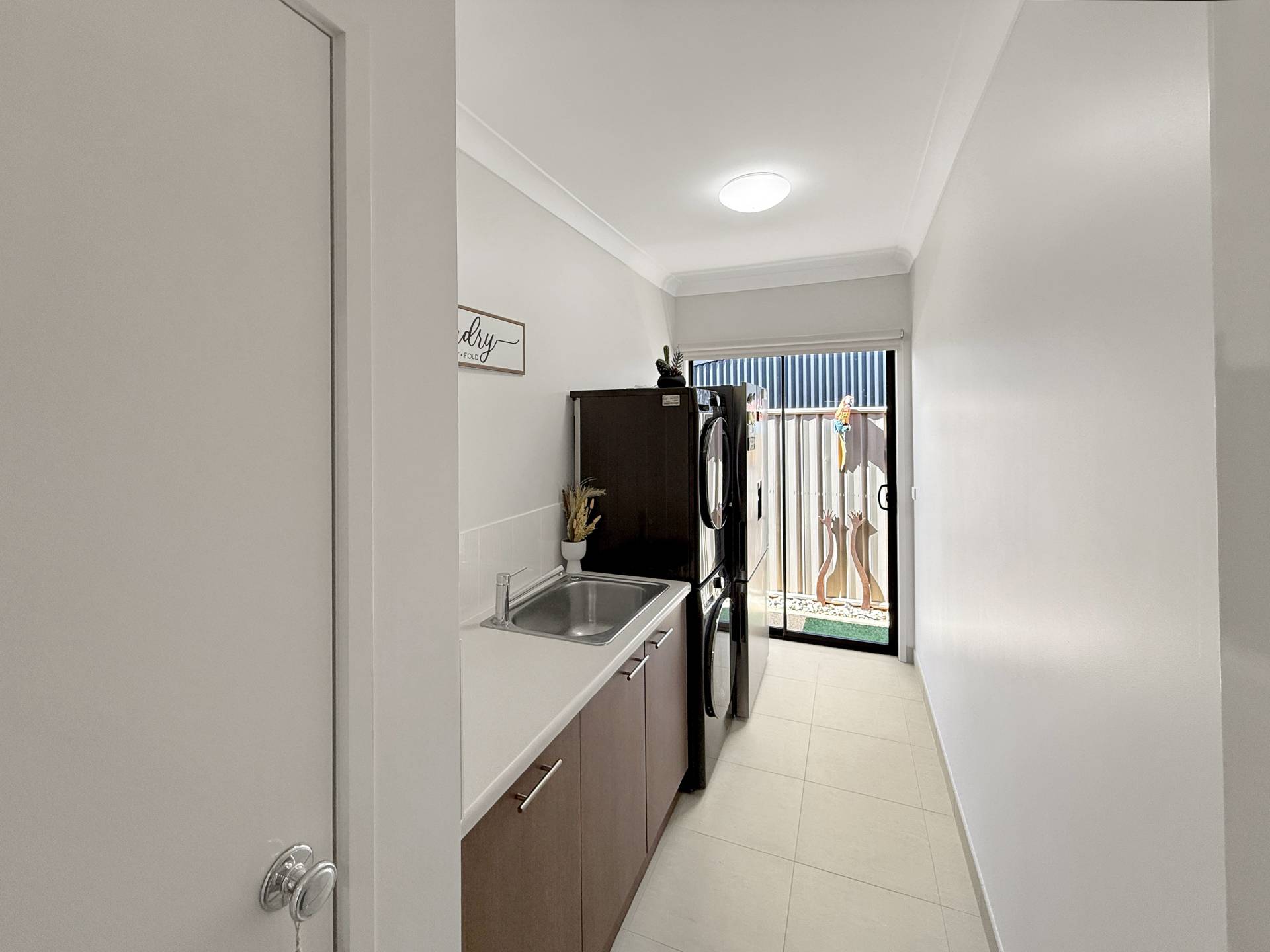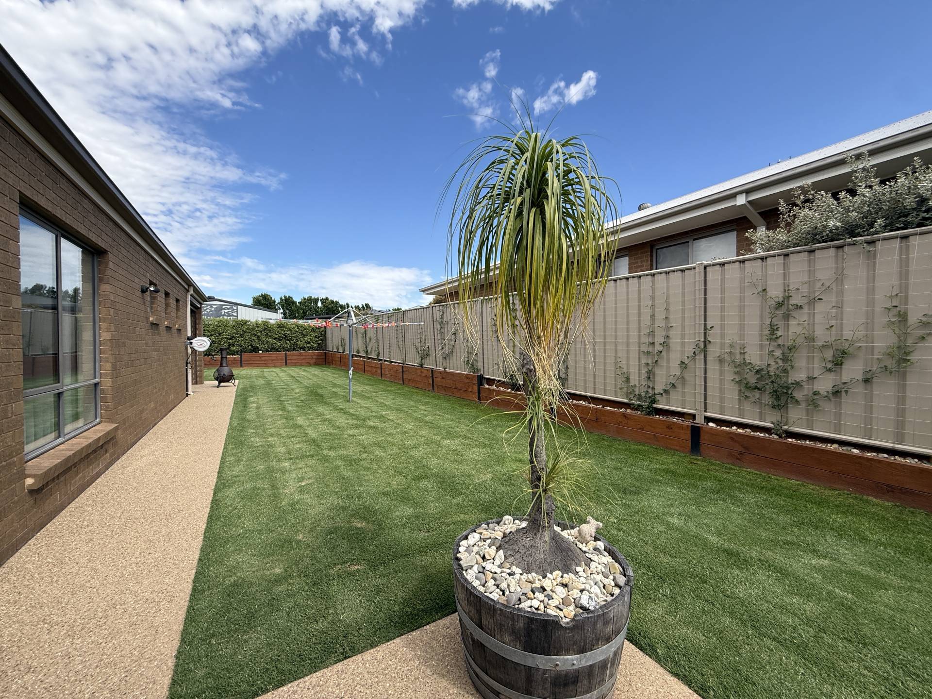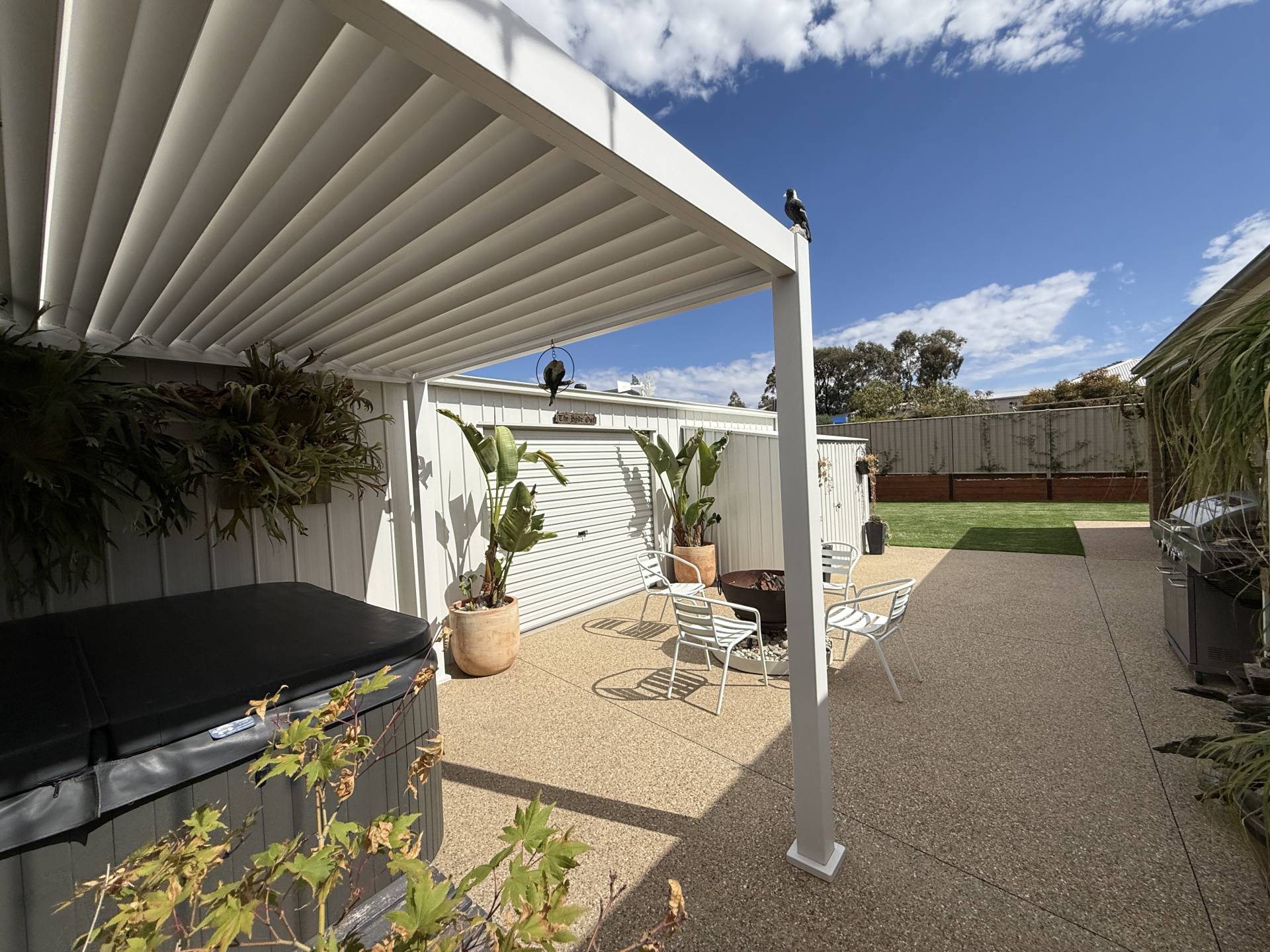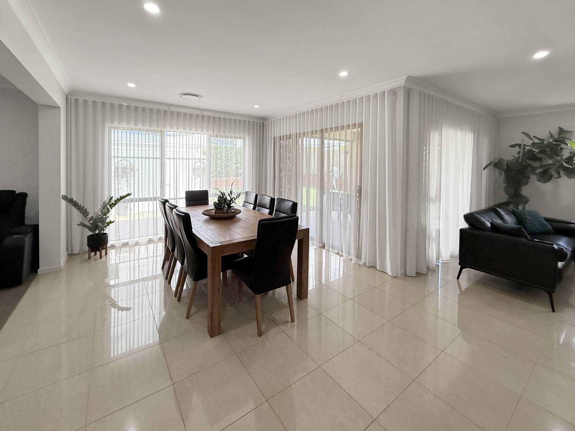 Seamlessly blending indoor and outdoor living, stacker doors open to an outdoor alfresco area surrounded by fully landscaped gardens with an automatic sprinkler system, creating the perfect setting for relaxing or entertaining.