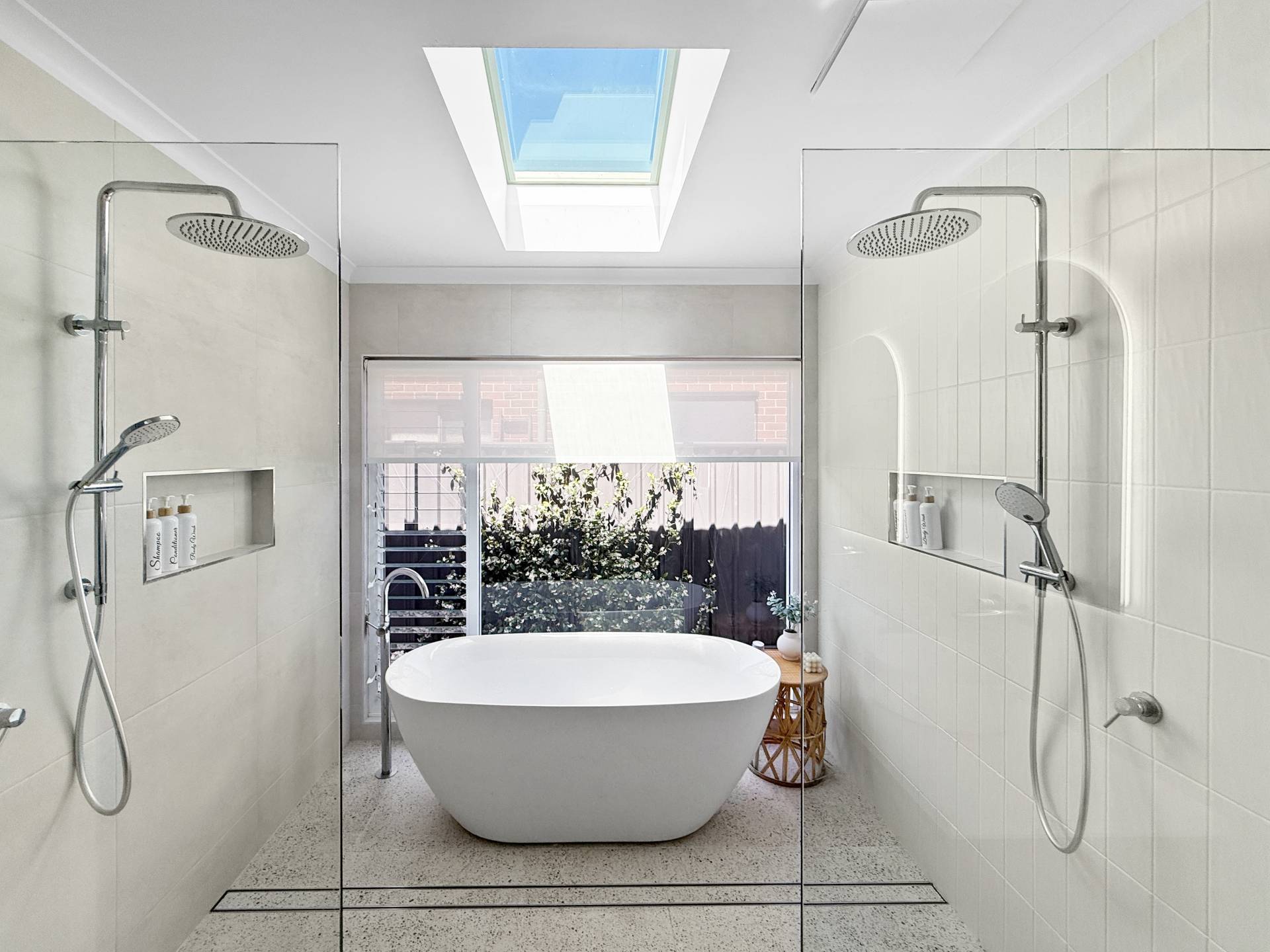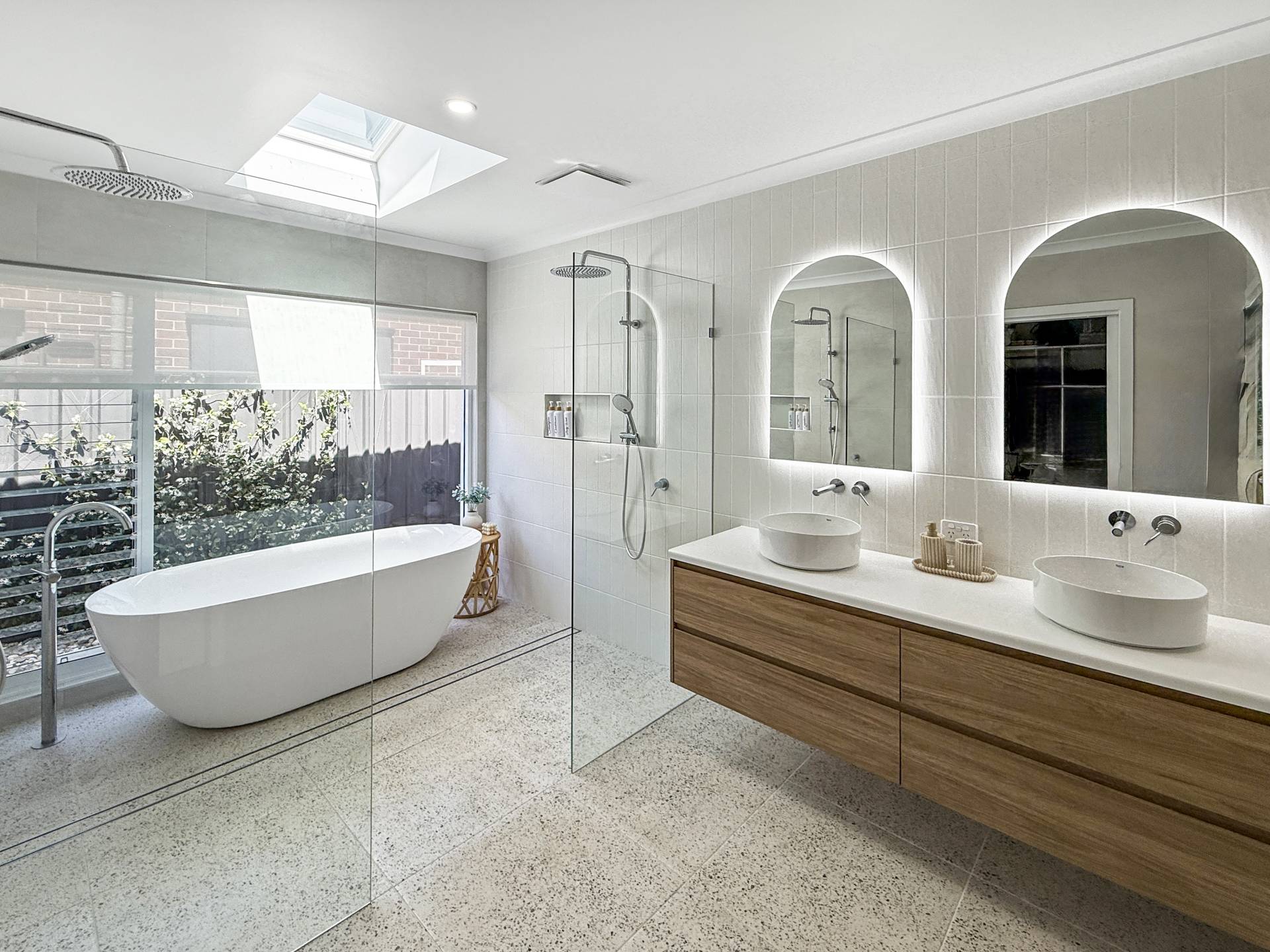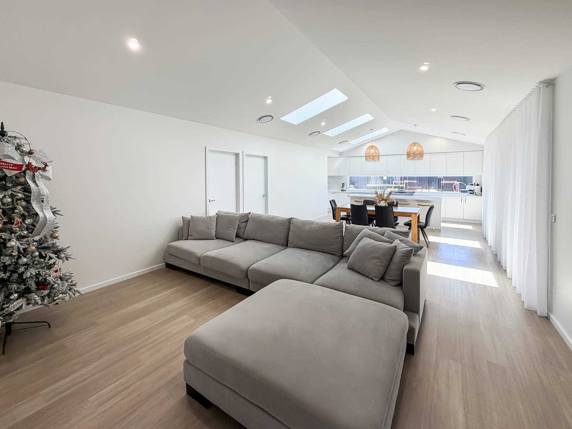 The main bedroom is nothing short of impressive, extra spacious and thoughtfully designed with a unique wrap-around walk-in robe accessible from both sides of the bed. It leads into a luxurious ensuite worthy of a magazine feature, showcasing twin vanities, a skylight, large double shower and an elegant freestanding bath. The home includes two internal toilets, plus a third conveniently located outside, ideal for guests, pool days or effortless entertaining. A separate study, beautiful laundry with ample storage and chic terrazzo tiling across all wet areas further enhance the home’s refined feel.