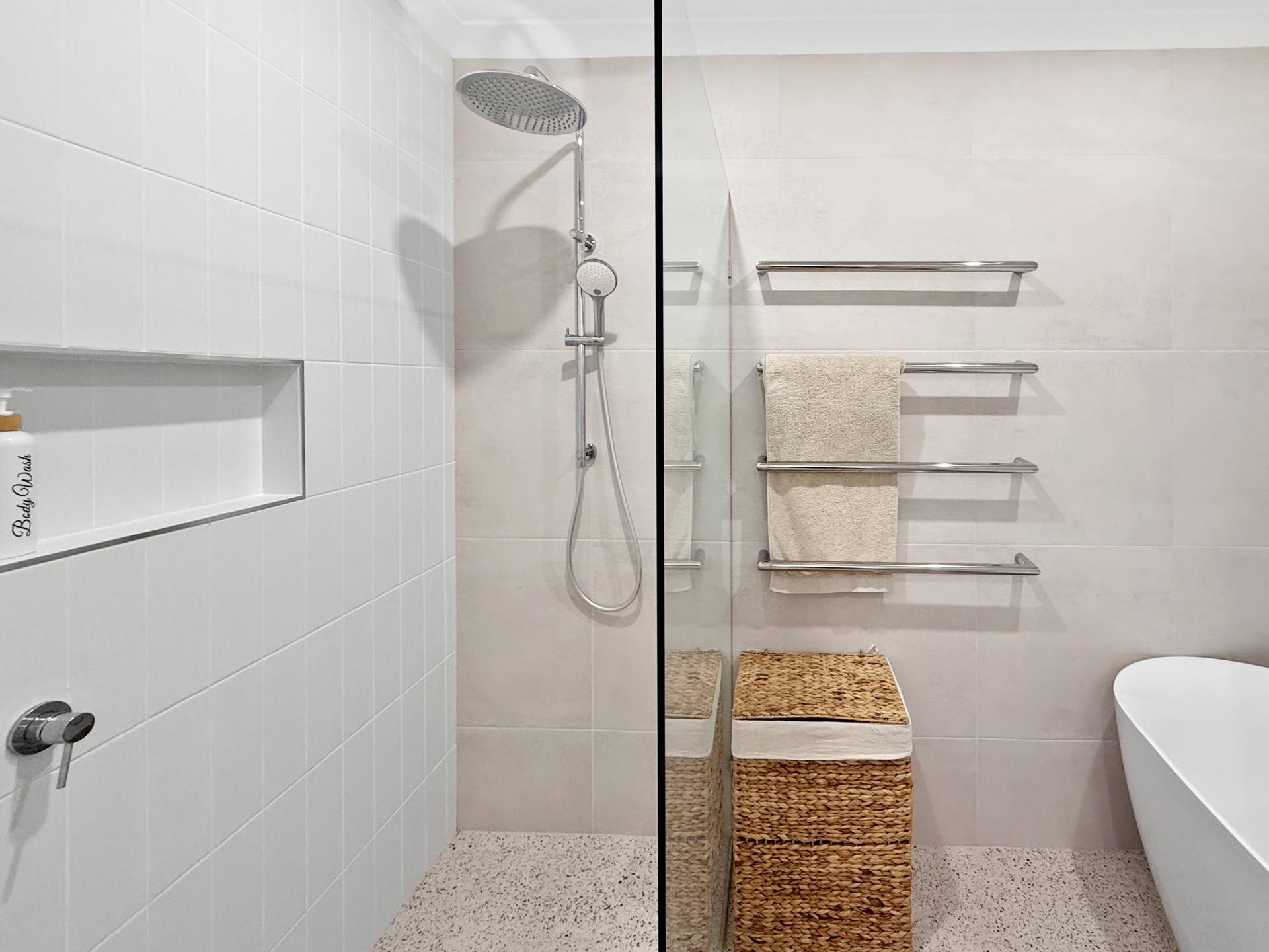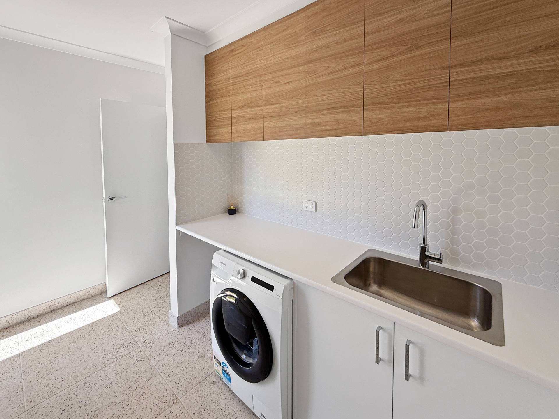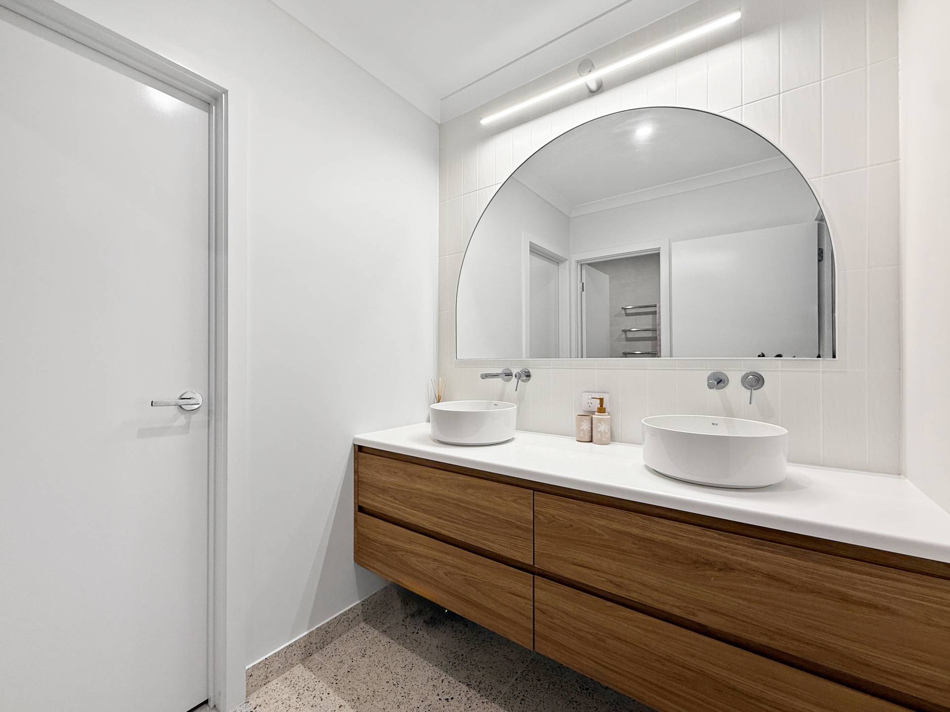 The main bedroom is nothing short of impressive, extra spacious and thoughtfully designed with a unique wrap-around walk-in robe accessible from both sides of the bed. It leads into a luxurious ensuite worthy of a magazine feature, showcasing twin vanities, a skylight, large double shower and an elegant freestanding bath. The home includes two internal toilets, plus a third conveniently located outside, ideal for guests, pool days or effortless entertaining. A separate study, beautiful laundry with ample storage and chic terrazzo tiling across all wet areas further enhance the home’s refined feel.