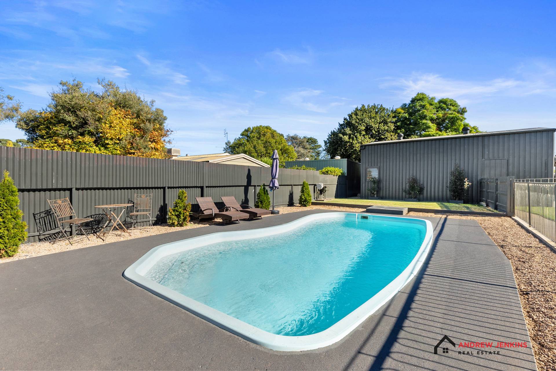 Step outside and enjoy the best of outdoor living. A large covered alfresco area is perfect for entertaining, complete with a ceiling fan and outdoor blinds for comfort in every season. The sparkling pool promises endless summer fun, while the impressive 6x9m shed features a concrete floor, power, wood fire, and an electric roller door with rear laneway access—ideal for the tradesperson or hobbyist. There's also a concrete pad with rear access for a caravan, plus a garden shed and a well-fenced yard for added convenience and security.