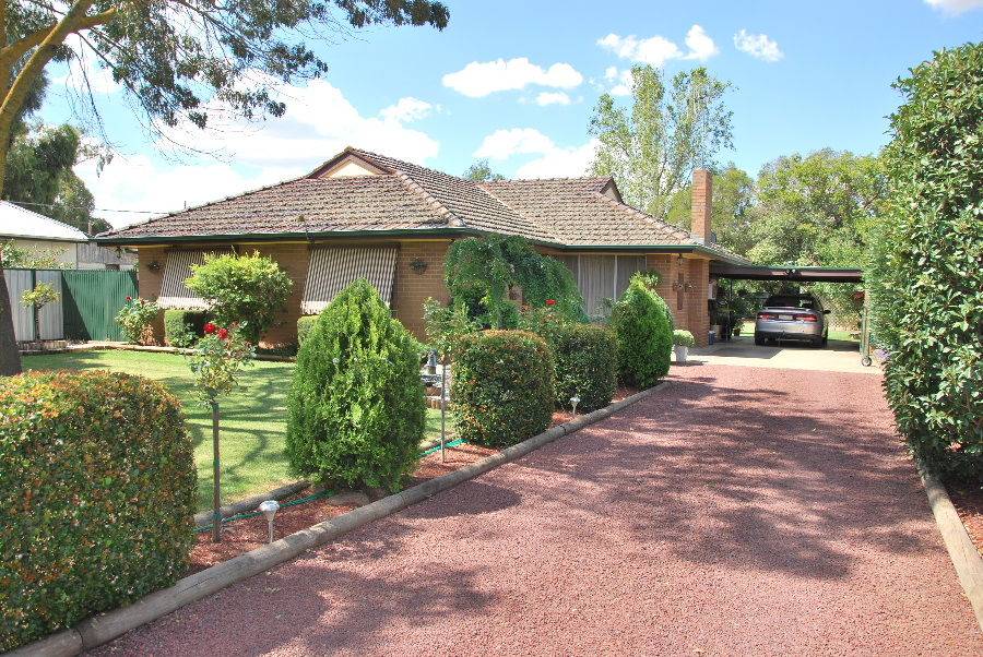Lovingly maintained and presented brick veneer home set in manicured gardens. Electric kitchen with an abundance of cupboards, adjoining dining area and spacious lounge with new carpet. Split system air conditioner. Three bedrooms, all with BIRs and ceiling fans. Bathroom with bath & vanity and separate room with shower & vanity. Separate toilet. Spacious laundry. Outside awnings. Paved outdoor entertaining area. Single carport, garden shed with concrete floor and secure dog kennels with runs. Very attractive gardens front & back. Close to primary school and kinder.